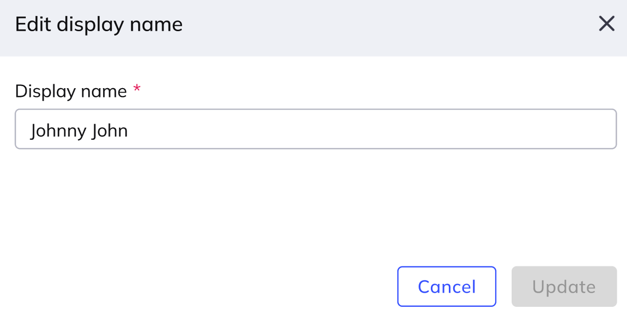 Admins can edit the display names of other admins, traders and viewers in the organization they administrate. They cannot edit their own display name.